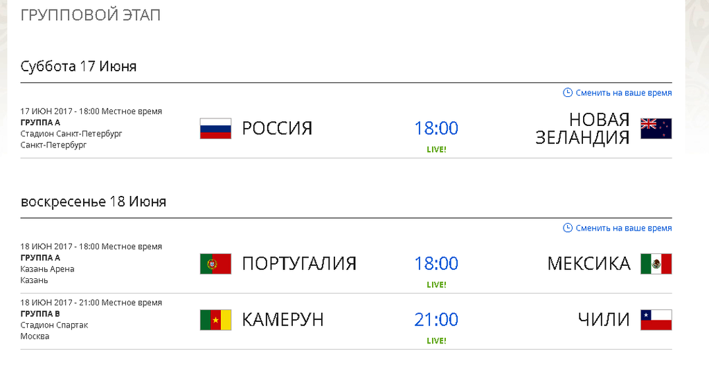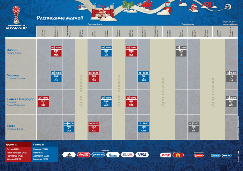 Кубок Конфедераций FIFA 2017 Расписание матчей