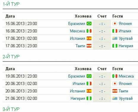 Напомним, что в Кубке Конфедераций примут участие 8 команд, которые будут разбиты на две группы.